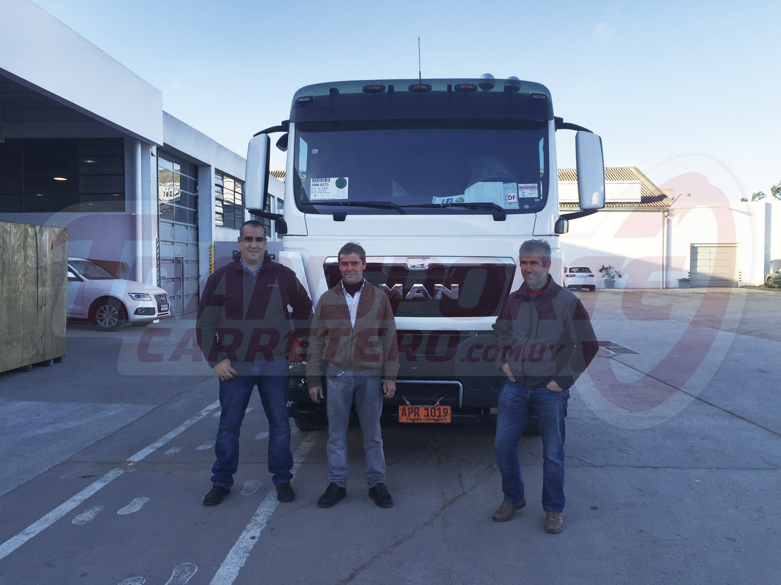 Entrega de una unidad MAN TGS 28-400 6x2 BL WW a Gustavo Otero. De Izq. a Der.: Carlos Fraga, José María Otero y Gustavo Otero.