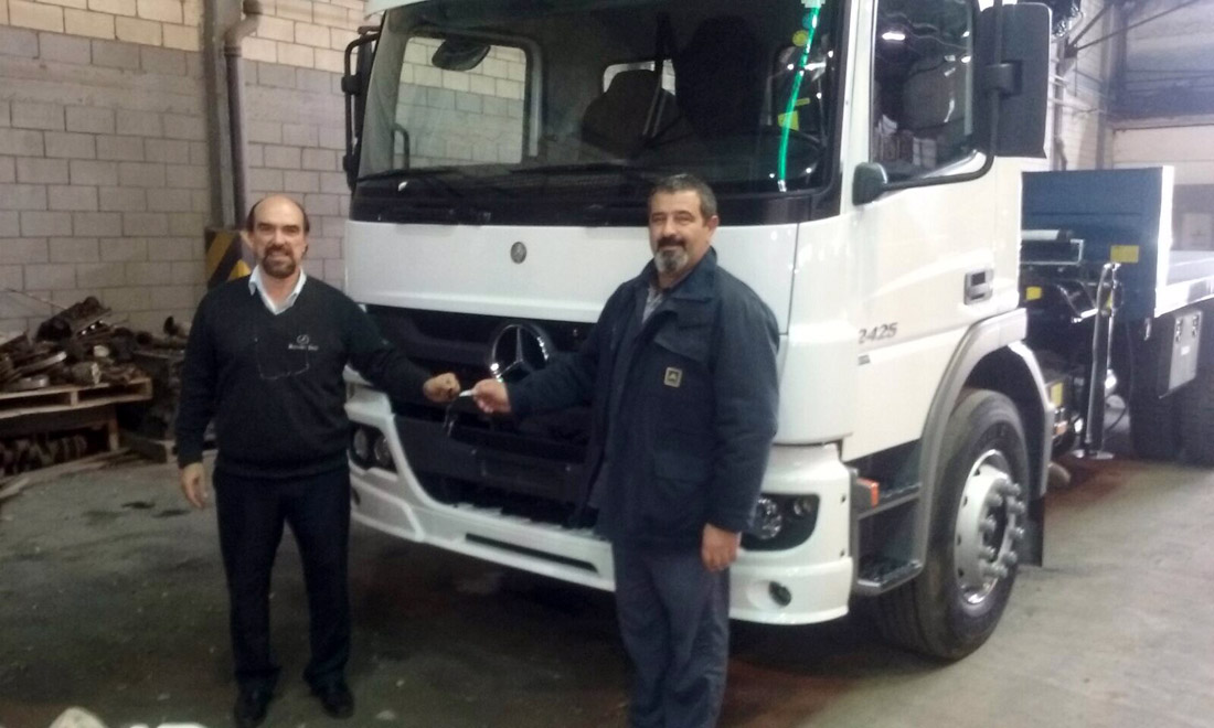 En el marco de la Licitación abreviada Nº 1500148900, se le entregó a ANCAP un Atego 2425 con Grúa HIAB provista por Calzá Hermanos. Recibió Alberto Frau, supervisor de Flota. Entregó Otto Rivas.