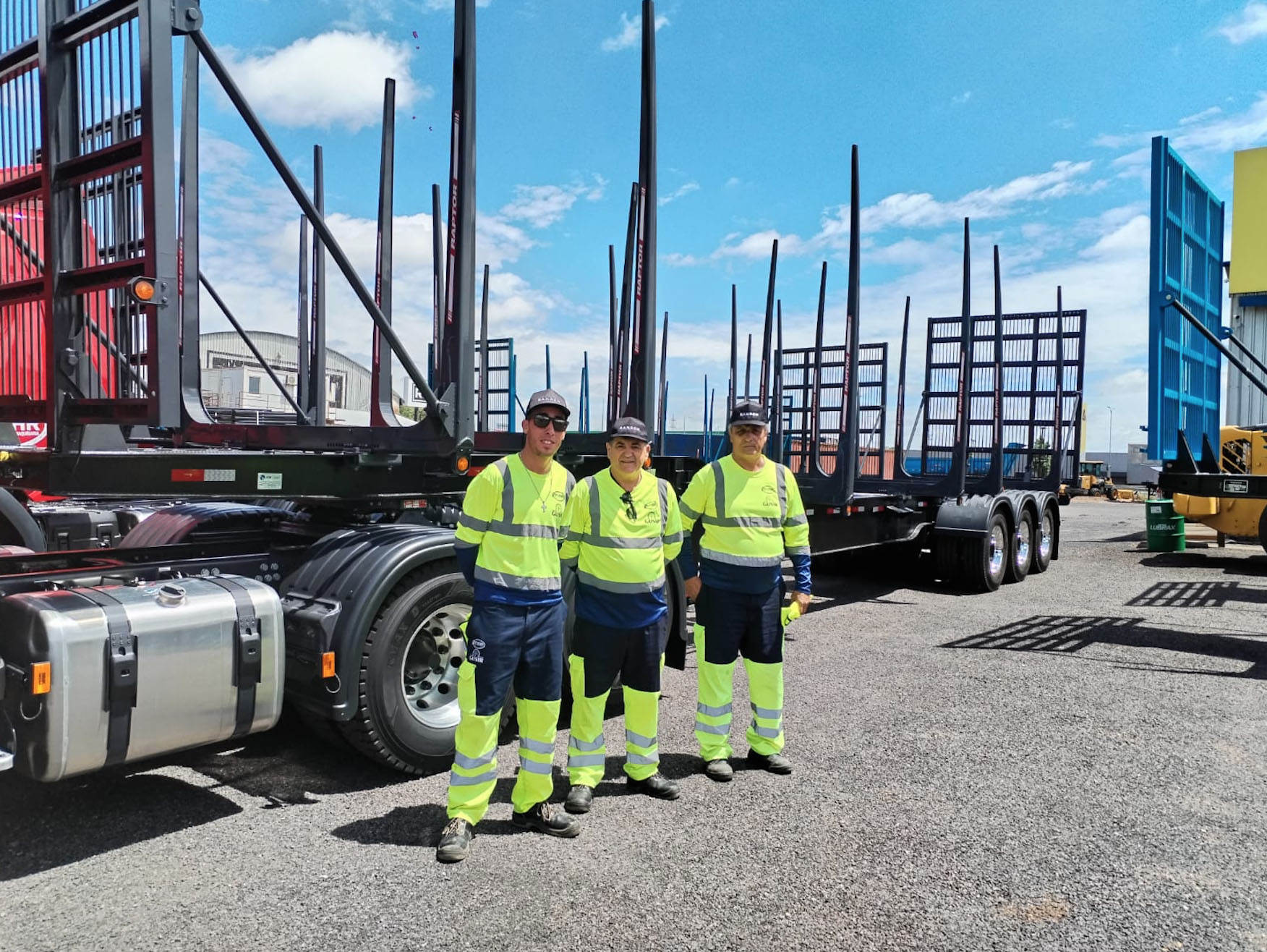 Recientemente se realizó la entrega de semirremolques forestales CIR a la empresa Ratimar. Retiran: Rodolfo Estebes, Francisco Dellapiazza y Luis Guanco.