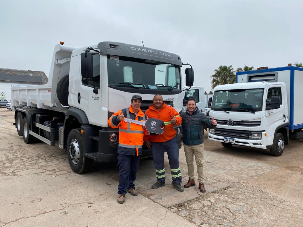 Carlos Moreno y Alejandro Hernández de Morenada S.A. recibieron una nueva unidad Volkswagen Constellation 24.330 de manos de Javier Abila de Julio César Lestido S.A.