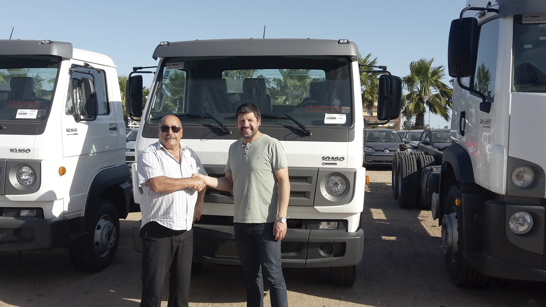 Sebastián Zeballos, Director de la empresa Valegra Srl., recibe su tercer camión VW 10.160 de manos de Juan C. Sosa de Werner Bernheim.