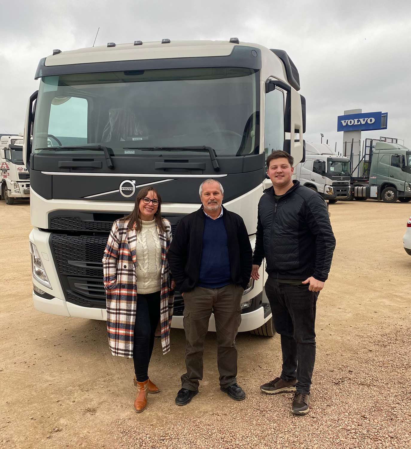 Entrega de un VOLVO FM 380 6X2R. En la foto: Rosa Olivera, Luis Saravia y Gianfranco Di Russo.