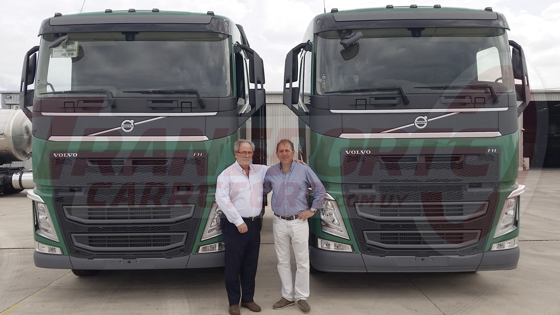La firma Tirapu S.A. incorporó dos nuevas unidades FH 440 6x2 T. En la fotografía encontramos a con el Cr. Jesús Luis San Martin, Director de la empresa, y a Gustavo Pacheco, del departamento comercial de Mecatronik.