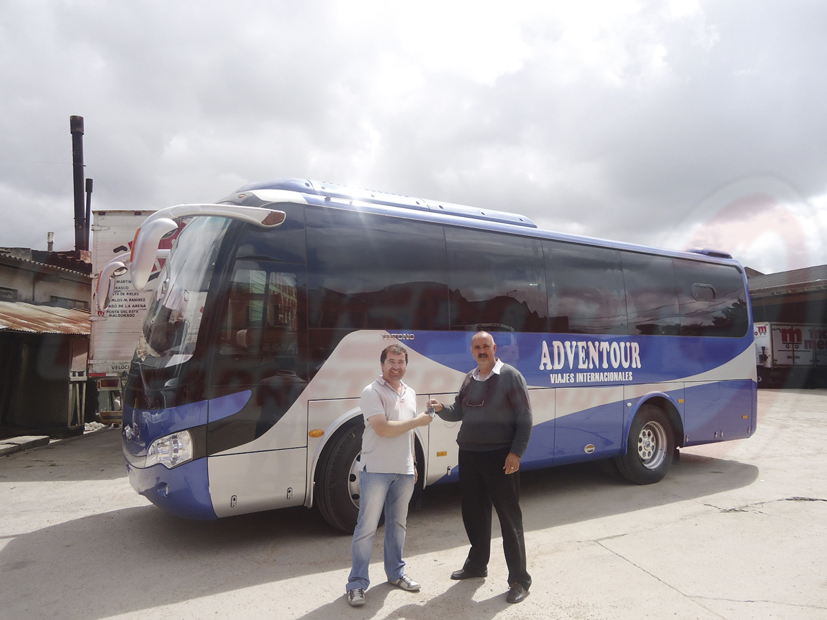 YUTONG - Adventour 27.12.2013 La empresa Adventour incorporó en su flota un ómnibus Yutong. En la imagen vemos a Luis Martínez que recibe las llaves de la unidad de parte de Carlos Dalto de Yutong (ing. Post-venta Yutong).