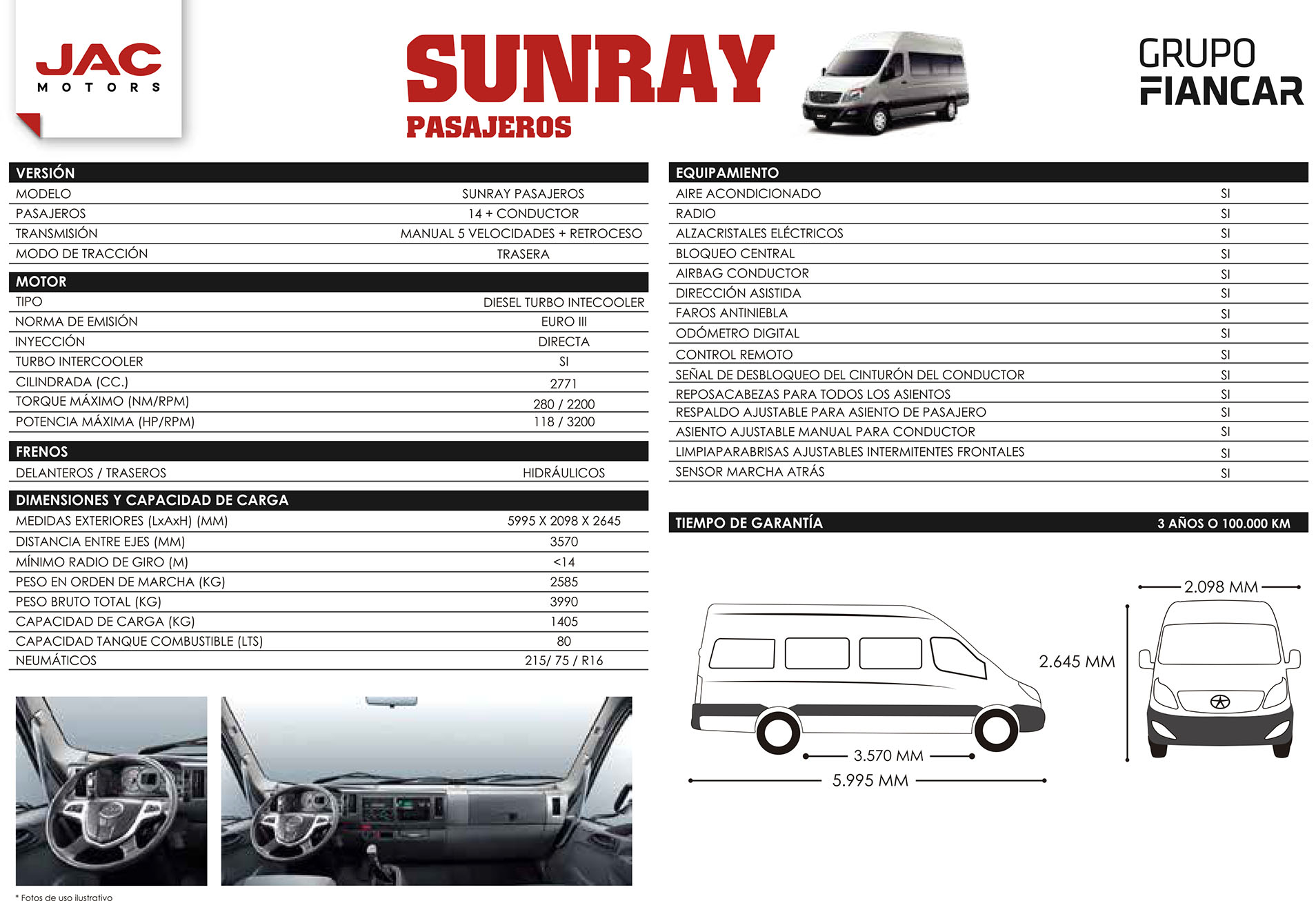 JAC Sunray Pasajeros | 14 pasajeros + 1 conductor