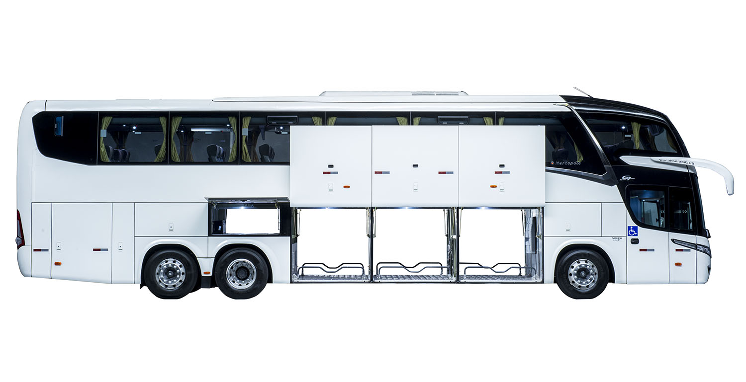 - Opción de Chasis: Mercedes Benz modelos O500RSD 2036, O500RSD2336 y O500RSD2436. Scania modelos K380B6x2 y K420B6x2. Volvo modelo B12R 6x2.