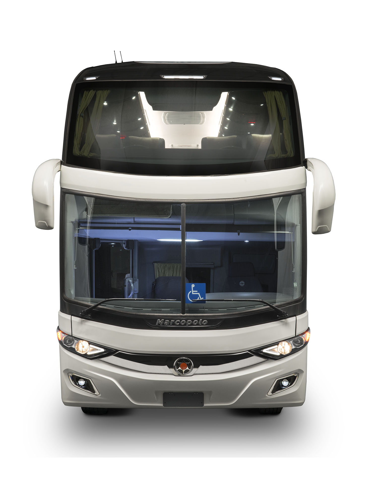 Opcionalmente puede ser ofrecido un sistema de audio y vídeo, audífonos individuales, Kit Business, así como display interno para la transmisión de mensajes a los pasajeros. Tablero del Conductor con el exclusivo sistema Satélite que le posibilita al conductor una excelente ergonomía al dirigir el vehículo; Nuevo Múltiplex como normal en todos los modelos.